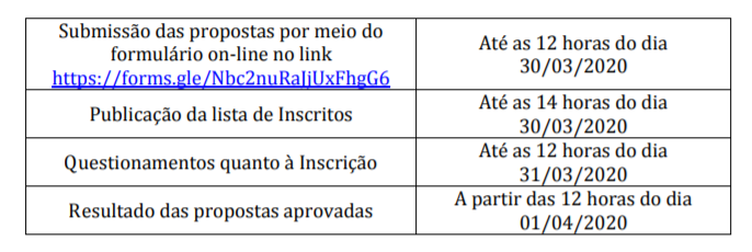 3.3. A presente chamada será regida pelo seguinte cronograma: