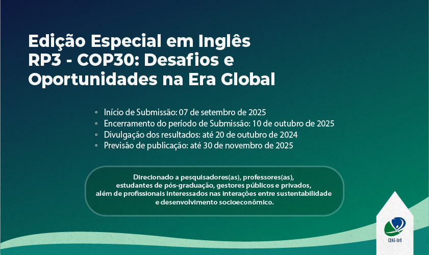 Esta edição especial, tem como objetivo reunir contribuições originais e relevantes que dialoguem com os temas centrais da Conferência das Partes (COP 30).