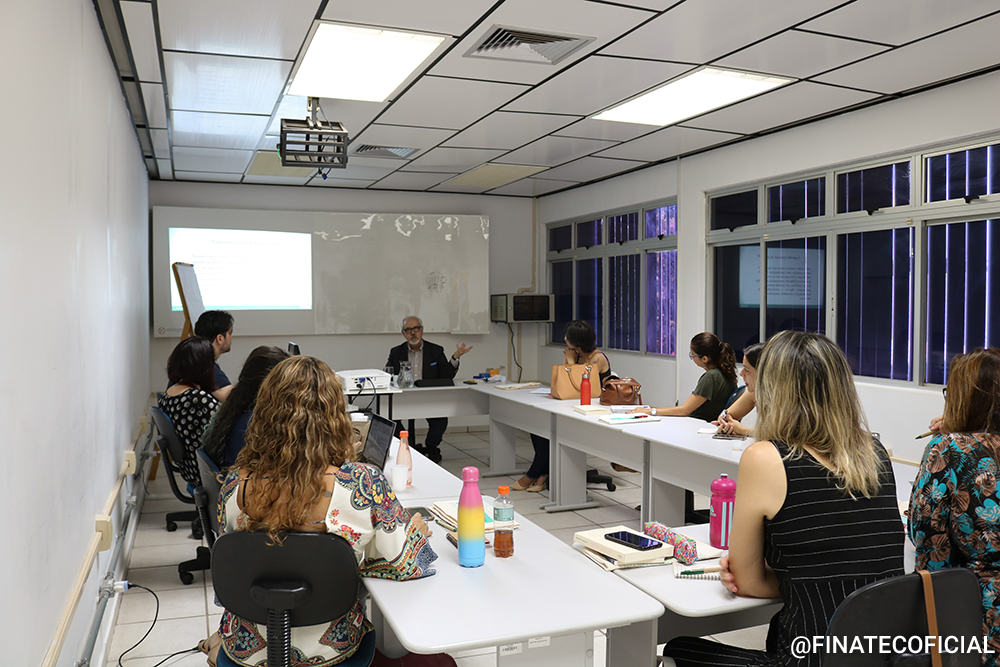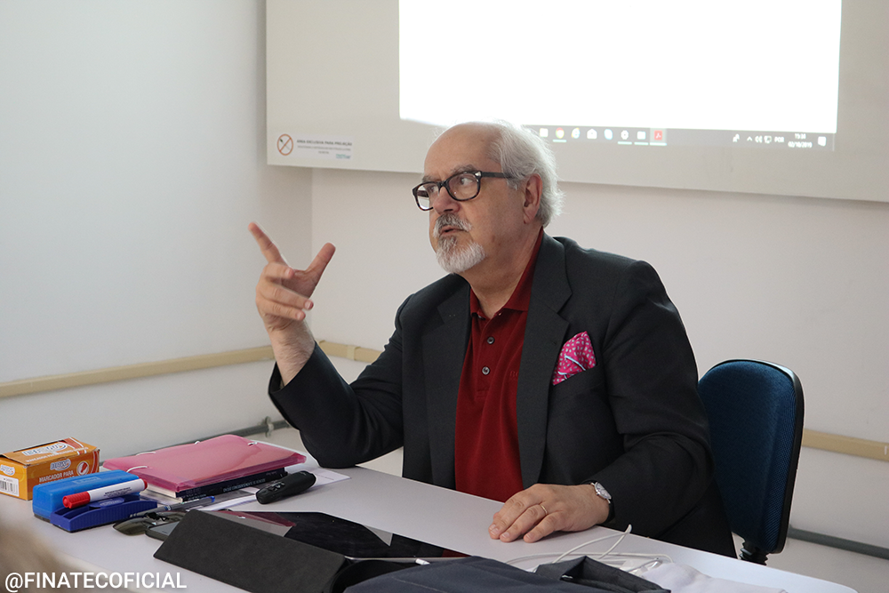 Sala de aula cheia, alunos concentrados e com o olhar fixo nas palavras do professor. Esse foi o retrato da primeira turma do curso de Escrita Criativa ministrado pelo professor Luiz Antônio de Assis Brasil e oferecido pela Academia Finatec.